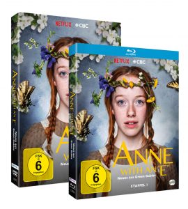 Anne with an E – Staffel 1: Kanada 2017; Regie: Paul Fox, Amanda Tapping, Niki Caro; Darsteller: Amybeth McNulty, Geraldine James, R.H. Thomson, Dalila Bela, Lucas Jade Zumann; FSK: ab 6 Jahren; Dauer: 315 Minuten, 8x 40 Min.; Sprachen: Deutsch 5.1, Englisch 5.1; Untertitel: –; Bild: 1,78:1 (16:9 anamorph widescreen); Vertrieb: ©Justbridge Entertainment. Veröffentlichung Verkauf: 03. April 2020.