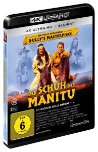 Der Schuh des Manitu: D 2001; Regie: Michael Bully Herbig; Darsteller: Christian Tramitz, Michael Bully Herbig, Sky du Mont, Marie Bäumer, Hilmi Sözer, Rick Kavanian; FSK: ab 6 Jahren; Dauer: 85 Minuten; Sprachen: Deutsch DTS-HD MA 5.1; Untertitel: Deutsch; Bild: 2,35:1 (16:9 anamorph widescreen); Vertrieb: ©Constantin Film / Universal Pictures Home Entertainment. Veröffentlichung Verkauf: 24. Juli 2025.