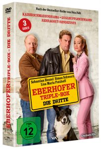 Die dritte Eberhofer Triple Box: D 2021-23; Regie: Ed Herzog; Darsteller: Sebastian Bezzel, Simon Schwarz, Lisa Maria Potthoff, Eisi Gulp, Sigi Zimmerschied, Enzi Fuchs, Daniel Christensen, Eva Mattes; FSK: ab 12 Jahren; Dauer: 287 Minuten, 3x 95 Min.; Sprachen: Deutsch 5.1; Untertitel: Deutsch; Bild: 1,85:1 (16:9 anamorph Widescreen); Vertrieb: ©Constantin Film / Vuelta Germany. Veröffentlichung Verkauf: 20. November 2025.