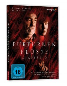 Die purpurnen Flüsse – Staffel 3: F / Bel / D 2021; Regie: Myriam Vinocour, Virginie Sauveur, Manuel Boursinhac, Ivan Fegyveres; Darsteller: Olivier Marchal, Erika Sainte, Bastien Bouillon, Jeanne Rosa, Florence Müller, Martine Schambacher, Patrick Catalifo, Thomas Durand, Ken Duken, Philippe Duclos, Natalia Dontcheva, Stephan Wojtowicz, Arben Bajraktaraj, Lizzie Brocheré, Wallerand De Normandie, Salomé Richard, Victor Polster; FSK: ab 16 Jahren; Dauer: 378 Minuten, 8x 46 Min.; Sprachen: Deutsch 5.1, Französisch 5.1; Untertitel: Englisch; Bild: 2,00:1 (16:9 anamorph); Vertrieb: ©ZDF Studios / Edel: Motion. Veröffentlichung Verkauf: 13. Mai 2022.