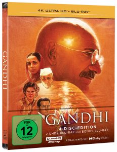 Der Film hat acht Oscar gewonnen, ein monumentales Meisterwerk, ein Biopic über Mahatma Gandhi von 1982. Sony veröffentlicht den Film jetzt als 4k Ultra HD Version auf zwei Discs mit zwei Blu-rays. Verbessertes Bild und Ton, bringen die Geschichte auf einer BD live noch näher an die ZuschauerInnen heran. Ein Stück Zeitgeschichte, das fast in Vergessenheit geraten ist und selbst wenn ihr den Film kennt, solltet ihr euch „Gandhi“ noch einmal gönnen. „Bester Film“ bei der Oscar-Verleihung, trotz oder obwohl das Thema schwierig ist. Der Film beginnt mit Gandhis Ermordung und erzählt dann seine Geschichte. Eine Geschichte, die für die Briten alles andere als positiv gezeichnet werden kann. Ein faszinierender Film über eine gewaltlose Politik oder wie man seine Ziele erreichen kann…