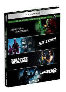 John Carpenter gilt als einer der renommiertesten Regisseure, die das Horror- und Science-Fiction-Genre hervor gebracht hat. Die „John Carpenter Collection“ beruft sich auf seine Wurzeln und vereint vier seiner Werke in einer Sammlung! In dieser Collection befinden sich die Filme „Die Fürsten der Dunkelheit“, „The Fog“, „Die Klapperschlange“ sowie „Sie Leben“.