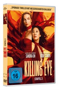 Killing Eve – Staffel 3: USA 2020; Regie: Damon Thomas, Miranda Bowen, Terry McDonough, Shannon Murphy; Darsteller: Sandra Oh, Jodie Comer, Fiona Shaw, Kim Bodnia, Sean Delaney, Owen McDonnell, Darren Boyd; FSK: ab 16 Jahren; Dauer: 337 Minuten, 8x 42 Min.; Sprachen: Deutsch 5.1, Englisch 5.1, Französisch 5.1; Untertitel: Deutsch, Englisch, Französisch, Niederländisch; Bild: 1,78:1 (16:9 anamorph); Vertrieb: ©Universal Pictures. Veröffentlichung Verkauf: 5. November 2020.