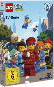 Lego City Abenteuer – DVD 2: Dä / USA 2019; Regie: –; Stimmen: –; FSK: ab 6 Jahren; Dauer: 110 Minuten, 10x 11 Min.; Sprachen: Deutsch 2.0, Englisch 2.0; Untertitel: –; Bild: 1,78:1 (16:9 anamorph); Vertrieb: ©Leonine Kids / Universum Kids. Veröffentlichung Verkauf: 13. März 2020.